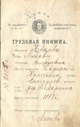 Лев Троцкий, в самый разгар разрухи, в начале 1920 года, рассуждая о милитаризации хозяйства Советской России, писал, что законченное проведение начал всеобщей трудовой повинности сможет быть осуществлено путем усовершенствования всего административного и хозяйственного аппарата страны и введения во всеобщий обиход трудовой книжки, которая давала бы точное определение места, занимаемого каждым гражданином и каждой гражданкой Советской республики в хозяйственной системе и в системе обороны страны. [4]