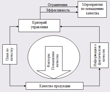 Таким образом, управление качеством продукции представляет собой процесс, включающий выявление характера и объема потребностей в продукции, оценку фактического уровня ее качества, разработку, выбор и реализацию мероприятий по обеспечению запланированного уровня качества продукции.