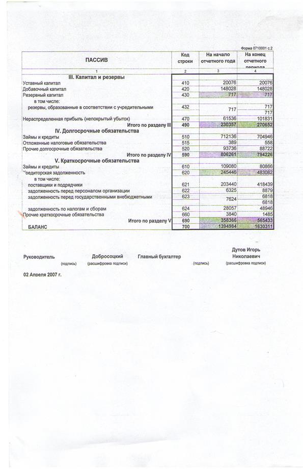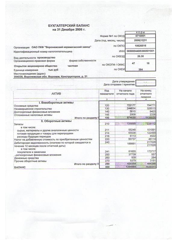 Бухгалтерский баланс ф. №1 за 2006 год