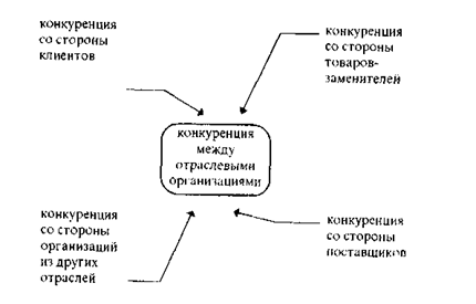 Предприятия вступают в конкуренцию не только друг с другом, но и с предприятиями других отраслей, производящими товары, являющиеся заменителями.