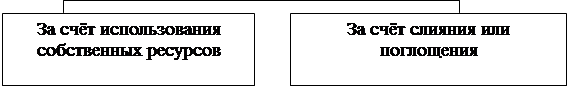 Стремление к росту ставит компанию перед выбором между двумя возможностями реализации данных стратегических решений: расширения за счет использования внутренних ресурсов, т.е. реинвестирования прибыли, и расширения за счет слияний и поглощений, т. е. внешней экспансии (см. рисунок 1.1).