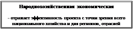 - Народнохозяйственная экономическая эффективность, учитывающая затраты и результаты, связанные с реализацией проекта, выходящие за пределы прямых финансовых интересов участников инвестиционного проекта и допускающие стоимостное измерение.