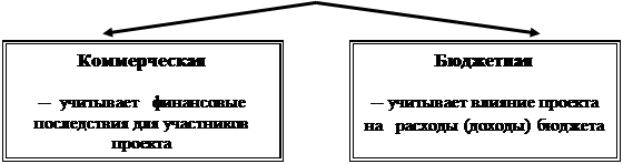 - Коммерческая (финансовая) эффективность, учитывающая финансовые последствия реализации проекта для его непосредственных участников