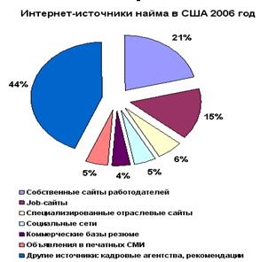 Интернет, всемирная глобальная сеть в последние несколько лет она превратилась в еще одно очень важное средство по набору кандидатов на вакантные должности. Особенно популярен подбор кадров по интернету в странах с высоким уровнем компьютерной культуры: это США, Канада, Великобритания, Скандинавские государства, Голландия. Интернет обладает целым рядом неоспоримых преимуществ как средство доведения информации о вакантных рабочих местах до рынка труда и получения обратной связи. Во-первых, это скорость и широта охвата нужной информации. Во-вторых, это возможность ведения диалога в режиме реального времени с кандидатами, находящимися в различных странах. В-третьих, по оценкам специалистов, подбор кадров с помощью интернета растет значительно быстрее традиционных методов.