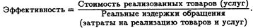 Конечным результатом деятельности торгового предприятия является стоимость реализованных товаров и услуг. Поэтому эффективность коммерческой деятельности торгового предприятия может быть выражена обобщающим показателем, рассматриваемым как отношение стоимости реализованных товаров и услуг к затратам на их реализацию по формуле