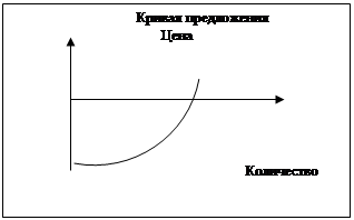 Кривая предложения показывает, какое количество товара и по какой цене производителя могут продать на рынке. Кривая поднимается вверх, потому, что чем выше цена, тем большее число фирм имеет возможность производить и продавать товар.