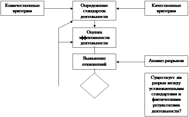 Организационный контроль представляет собой сравнение систематической оценки действий организации с установленными организационными стандартами, выявление отклонений от стандартов и норм посредством анализа разрывов (gap analysis), а также совершенствование контролируемой системы. На первом этапе процесса контроля стратег должен установить стандарты и нормы деятельности. Они могут иметь количественное выражение, качественную форму или быть сочетанием количественных и качественных показателей.