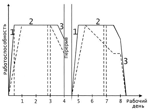 В процессе работы трудоспособность работника изменяется и характеризуется определенными фазами: