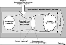 В результате соотношение между стратегией, архитектурой и тактикой (в виде реализуемых проектов) можно отобразить так, как это представлено на рисунке ниже.