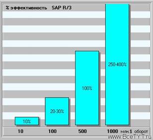 Рис.3 Относительная эффективность внедрения SAP на предприятиях в зависимости от годового оборота