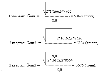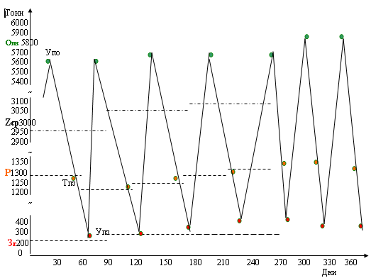 Результаты расчетов показали, что рациональная система заказов, оптимизирующая товарные запасы топлива, позволит сэкономить на издержках хранения топлива в сумме 6952 тыс. руб.