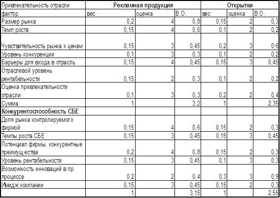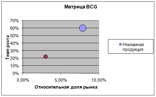 Таким образом, мы видим, что ООО «Галеон» осуществляет конкурентную стратегию диверсификации (дифференциации продукции) по производству брошюр, и стратегию фокусировки на диверсификацию по направлению производства открыток. Для фирмы характерно сильное положение на рынке и зрелость жизненного цикла.