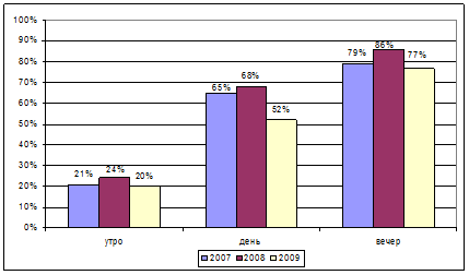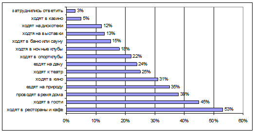 Также рассмотрим результаты проведенного исследования предпочтений потребителей в отношении видов обслуживания. Ниже приведены данные экспертного Интернет-опроса, проведенного в 2009 году компанией «Арсенал-Груп» с целью выявления особенностей поведения потребителей при выборе и оценке предприятия ресторанного бизнеса в различных ситуациях (были опрошены 560 жителей Санкт-Петербурга) [15, с. 56].