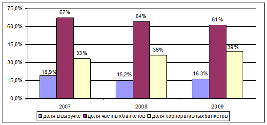 · в 2008 году также произошло снижение количества банкетов во второй половине года, также под влиянием кризиса, в 2009 году ситуация начала стабилизироваться;