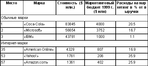 Вставка 1. Цена сохранения марки Создание и развитие марки всегда обходится очень дорого. Но без формирования у потребителей чувства уверенности в марке шансы на ее рыночный успех резко снижаются. В устоявшихся товарных категориях, таких как прохладительные напитки, кукурузные хлопья и хозяйственные товары, большинство лидирующих марок существует на протяжении десятилетий. Репутация, которой они пользуются, существенно осложняет продвижение на рынок новых марок. Для Интернет-компаний затраты на создание марки также являются серьезным барьером на входе. Новые компании уже смирились с тем, что 90% привлеченного капитала им придется направить на рекламу и маркетинг. По некоторым оценкам, создание новых сетевых марок обходится в сотни миллионов долларов. Но даже для тех из них, что прорвались через информационный хаос, цена сохранения лидерства остается по сравнению с обычными, не виртуальными, марками оченьвысокой. Например, Amazon.com по-прежнему тратит свыше $400 млн (более 25% выручки) на поддержку (организация продаж и маркетинг) своей марки. |