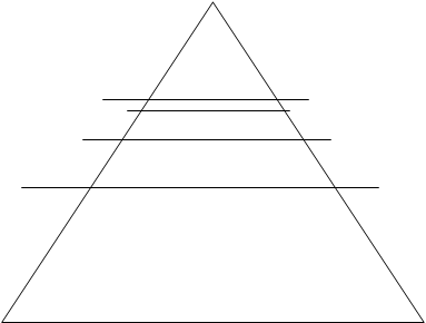 Первые две группы потребностей первичные, а следующие три вторичные. Согласно теории Маслоу, все эти потребности можно расположить в строгой иерархической последовательности в виде пирамиды, в основании которой лежат первичные потребности, а вершиной являются вторичные (рис.1).