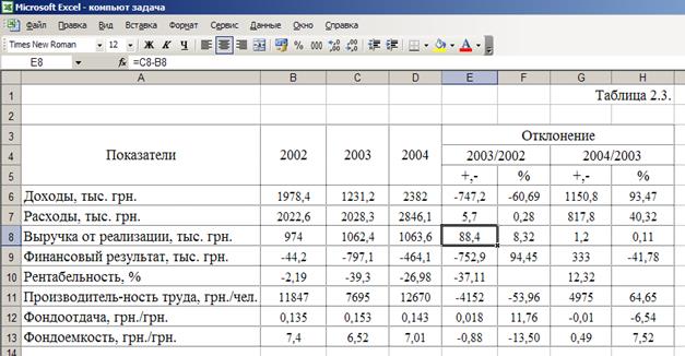 2.3 Анализ финансовых показателей работы Керченского морского завода «Фрегат» с использованием компьютерных расчетов