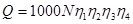 где Q − количество тепла, Вт; N − установочная мощность электродвигателей, кВт; η1 − коэффициент использования установочной мощности, равный 0,7÷0,9; η2 − коэффициент загрузки – отношение средней потребляемой мощности к максимально необходимой, равный 0,5 ÷ 0,8; η3 − коэффициент одновременности работы электродвигателей, равный 0,5 ÷ 1; η4 − коэффициент, характеризующий долю механической энергии, превратившейся в тепло.