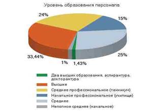 На конец 2007 года более 30% работников (более 70% руководителей, около 70% специалистов, почти 30% служащих и более 10% рабочих) имеют высшее профессиональное образование. Более 40% (44,4%) рабочих и служащих имеют начальное или среднее профессиональное образование. Студентами высших и средних учебных заведений являются 1105 работников (7% общей численности).