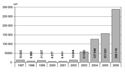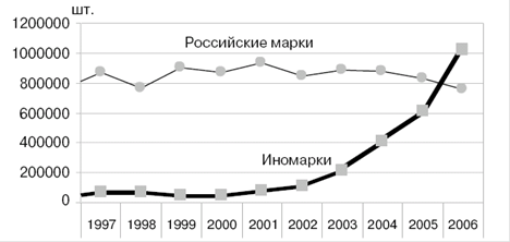 Далее рассмотрим ситуацию, сложившуюся на автомобильном рынке России в настоящее время. В связи с переходом к рыночной экономике автомобилестроение Российской Федерации испытывало значительные трудности. После реформ 90-х гг. производство автомобилей резко сократилось, до критического уровня ухудшилось финансовое положение большинства предприятий. В последующие годы быстрыми темпами росла конкуренция во всех сегментах рынка в связи с возрастающим конкурентным давлением со стороны иностранных производителей стран Евросоюза, США и Японии.