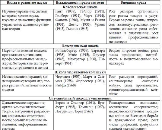 Классическая школа управления (1911 год). Осознание управления как профессии, опирающейся на разнообразные достижения междисциплинарной, пока еще очень молодой, быстро и неравномерно развивающейся области научного и практического знания, занимает прочное место в современной цивилизации. Получив в начале века наиболее четкое выражение в концепциях научного организационное поведение управления Фредерика Тейлора, идеальной бюрократии Макса Вебера, науки администрирования Анри Файоля, эта область знаний первоначально пошла по пути жесткого рационализма в управлении.