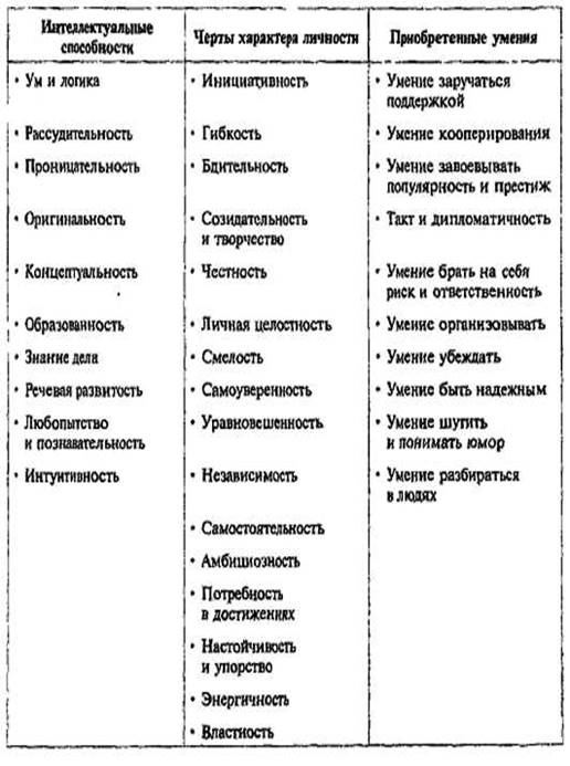 Как свойство лидерство представляет собой набор характеристик или систему качеств, принадлежащих тем, кто осуществляет не принудительное влияние. К наиболее существенным их них относятся следующие: