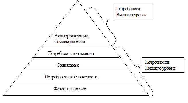 Согласно концепции А. Маслоу, потребности более высокой ступени возникают и начинают выступать мотивирующим фактором, если удовлетворены хотя бы частично потребности предыдущей ступени. Потребности более высокого уровня становятся актуальными, если в достаточной мере удовлетворены базовые 1.2 ступеней.