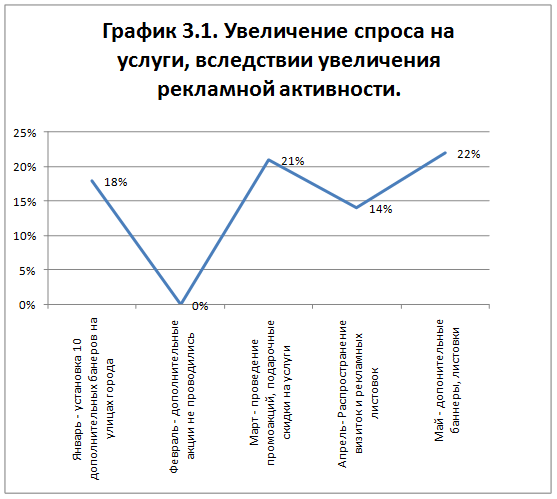 Далее на графике покажем увеличение спроса на услуги компании при увеличении рекламной активности.