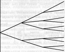 Дерево вероятностей показывает, что если в периоде 1 результатом будет верхняя ветвь, то она приведет в периоде 2 к другому множеству возможных результатов, чем это было бы, если бы результат в периоде 1 выражался нижней ветвью. Аналогичная картина наблюдается и при переходе от периода времени 2 к периоду 3. Поэтому в момент временного периода 0 дерево вероятностей представляет наилучшую оценку того результата, который, вероятно, будет иметь место в будущем, в зависимости от того, что происходило прежде. Каждой ветви сопоставлена вероятность получения соответствующего результата.