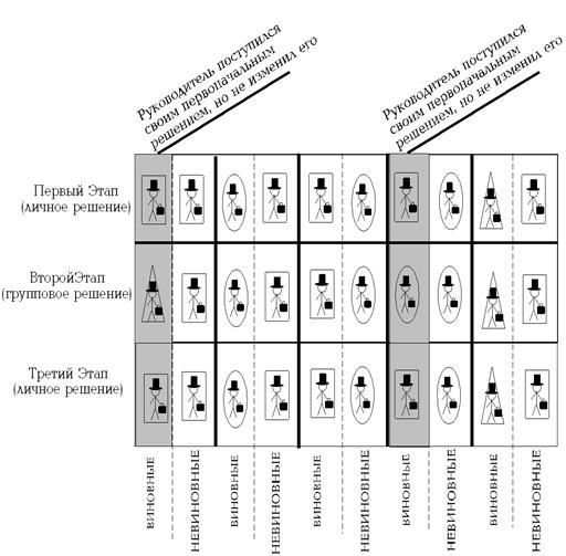 Исследование содержит гипотезу, заключающуюся в предположении, что в рабочих коллективах позиции руководителя определяют принятие общегруппового решения в противоречивых ситуациях.