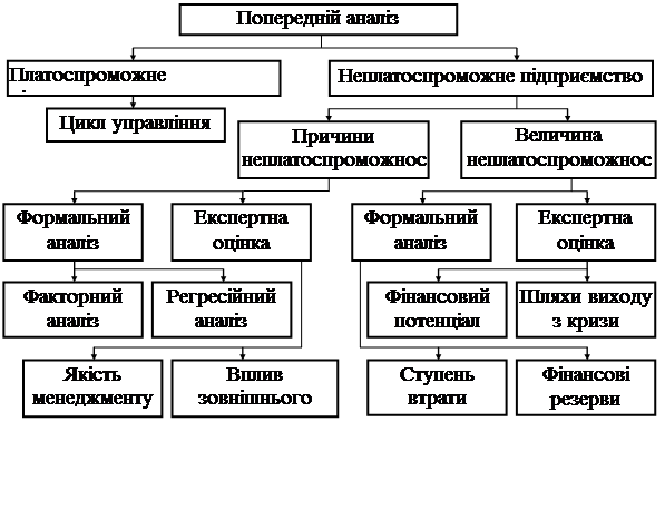 Криза в будь-якій сфері діяльності підприємства може привести до кризових явищ та появи чинників, здатних викликати збої в нормальному режимі діяльності підприємства, що може викликати неплатоспроможність, а потім і призвести до банкрутства. З метою уникнення кризових ситуацій у діяльності підприємства, важливе значення має діагностика кризових явищ у різних сферах його діяльності.