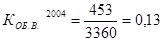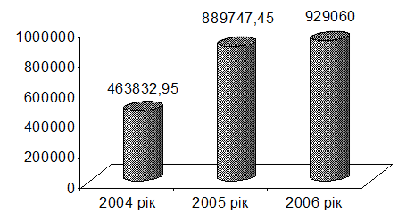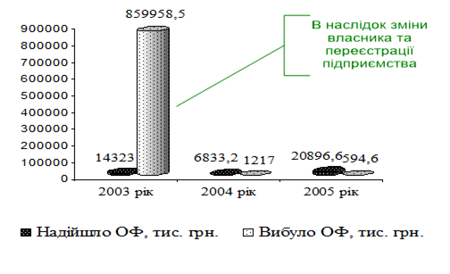 З розрахунків можна зробити наступні висновки. Частка основних засобів, що надходить невелика, і постійно варіюється від спаду до збільшення (2004 – 14323,0 тис. грн., 2005 – 6833,2 тис. грн., 2006 – 20896,6 тис. грн.); коефіцієнт вибуття досить високий у 2004 році (99,03%), в наслідок зміни власника та перереєстрації але має тенденцію до зниження, і у 2005 вже складає лише 0,13%, за аналогічний період 2006 року його значення 0,06%. Аналізуючи ступінь зношеності основних фондів, можемо стверджувати, що коефіцієнт зносу перепнув бар`єр у 50%, що свідчить про середній перевалюючи до великого ступеню зношеності основних фондів, так у 2004 році він складає 54,47%, збільшується на 2,37% у 2005 році, відповідно у 2006 році збільшення складає 0,43%, профілактикою зносу на підприємстві слугують капітальні інвестиції, які направлені на модернізацію, ремонт та поточне обслуговування основних фондів.