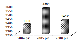 Продуктивність праці одного працівника, порівняно з 2004 р. знизилась на 12,49 тис. грн/люд. Це зменшення обумовлене перш за все зменшенням суми доходу. Однак, у 2006 році цей показник дещо збільшився порівняно з 2005 р. (на 6,77 тис. грн./люд.).