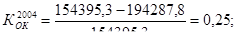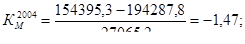 З проведених розрахунків стану та ефективності використання основних фондів видно, що показник фондовіддачі знаходиться на досить невисокому рівні, і його значення у 2004 році складає 0,68 грн./грн. та продовжує неухильно зменшуватися, так у 2005 році показник фондовіддачі зменшується на 0,28 грн./грн. у порівнянні з аналогічним періодом 2004 року Характеризуючи фондовіддачу за 2006 рік можна констатувати, що вона збільшилась на 0,2 грн./грн. порівняно з відповідним періодом 2005 року.