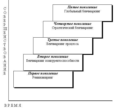 Подобная функция в системе предпринимательства уже достаточно давно и успешно используется в практике японских, американских, западно-европейских и скандинавских бизнесменов и ученых. Она известна среди специалистов как бенчмаркинг (Benchmarking). Бенчмаркинг близок к понятию маркетинговой разведки (маркетинг Intelligence), которое означает постоянную деятельность по сбору текущей информации об изменении внешней среды маркетинга, необходимой как для разработки, так и корректировки планов маркетинга. Однако маркетинговая разведка имеет целью сбор конфиденциальной или полу конфиденциальной информации об изменении внешней среды маркетинга [ 40,53] . Бенчмаркинг может рассматриваться как процесс, деятельность по долгосрочному обдумыванию стратегии предпринимательства, основываясь на лучшем опыте партнеров и конкурентов в отраслевом, межотраслевом, национальном и межнациональном уровнях.