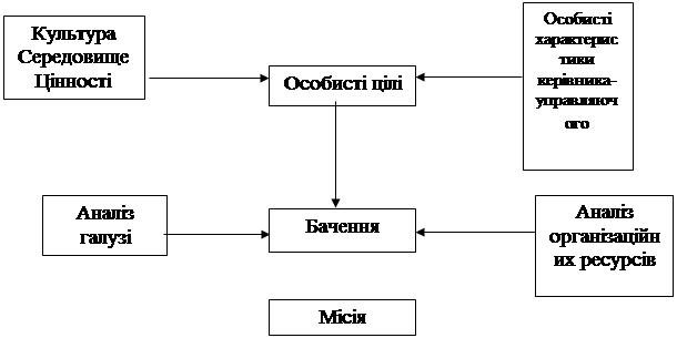Основна загальна мета організації - чітко виражена причина її існування - означається як її місія. Цілі виробляються для здійснення цієї місії. Місія деталізує статус фірми і забезпечує напрям і орієнтири для визначення цілей і стратегій на різних організаційних рівнях. Формулювання місії організації повинне містити наступне: