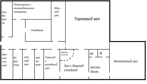 На предприятии общественного питания кафе «Колхоз» должны быть использованы следующие требования к компоновке помещений: