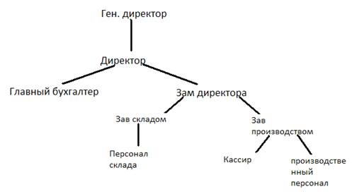 В структуру штата предприятия входят: директор, зам.директора, главный бухгалтер, зав. производством, производственный персонал, персонал склада.