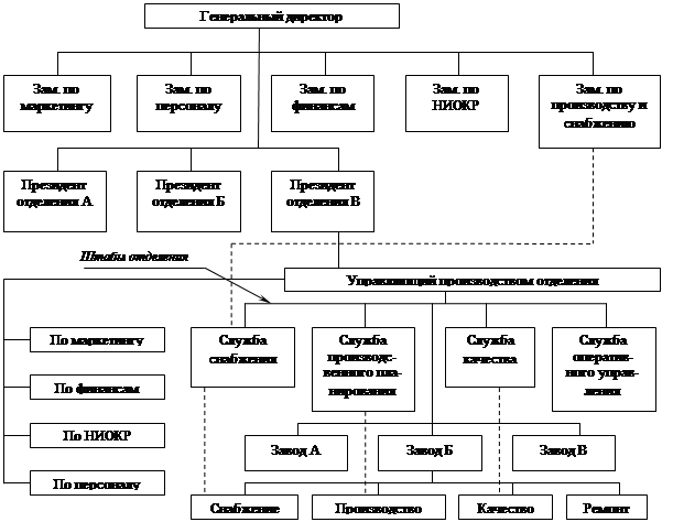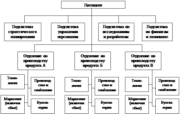 Между тем сегодня на Западе классические линейно-функциональные структуры присущи лишь мелким и части средних фирм. Для крупных ком-паний доминирующим стал дивизиональный подход (от английского division - подразделение).