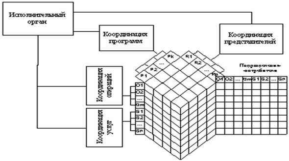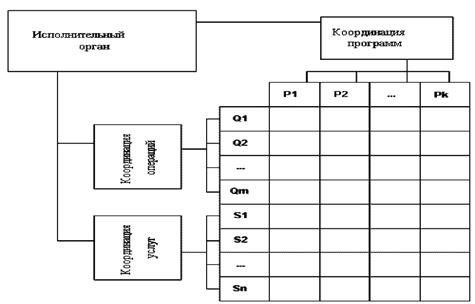 Такая структура представляет собой сетевую структуру, построенную на принципе двойного подчинения исполнителей: с одной стороны – непос-редственному руководителю функциональной службы, которая предостав-ляет персонал и техническую помощь руководителю проекта, с другой – ру-ководителю проекта или целевой программы, который наделен необходимы-ми полномочиями для осуществления процесса управления.