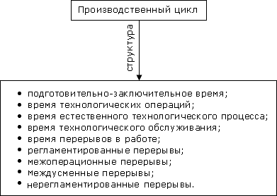 Время протекания процесса производства, которое называется технологическим циклом, или рабочим периодом, и включает: