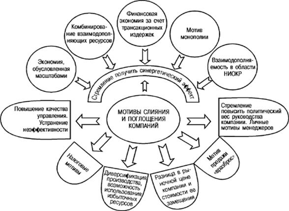 Анализируя мировой опыт и систематизируя его, можно выделить следующие основные мотивы слияний и поглощений компаний (рис. 2).