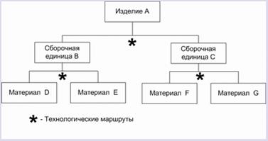 Технологический маршрут – информация, описывающая способ производства данной номенклатурной позиции. Включает операции, которые необходимо выполнить, их последовательность, различные используемые рабочие центры, а также нормы времени для подготовки и обработки. В некоторых компаниях технологические маршруты также содержат информацию об инструментальном обеспечении, требования к уровню квалификации рабочих, операциях контроля качества, требования к тестированию и др. Для каждой изготавливаемой номенклатурной позиции должен быть описан хотя бы один технологический маршрут ее производства. Если рассматривать многоуровневую спецификацию продукта, то технологических маршрутов, применяемых при изготовлении готовой продукции, для которой описана данная спецификация, должно быть как минимум столько, сколько изготавливаемых номенклатурных позиций имеется в списке компонентов этого готового продукта плюс как минимум один технологический маршрут для этой готовой продукции.
