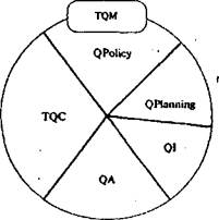 TQC - Всеобщее управление качеством; QA - Обеспечение качества; QPolicy - Политика качества; Qplanning - Планирование качества; QI - Улучшение качества. Рисунок 1.2 - Основные составляющие TQM