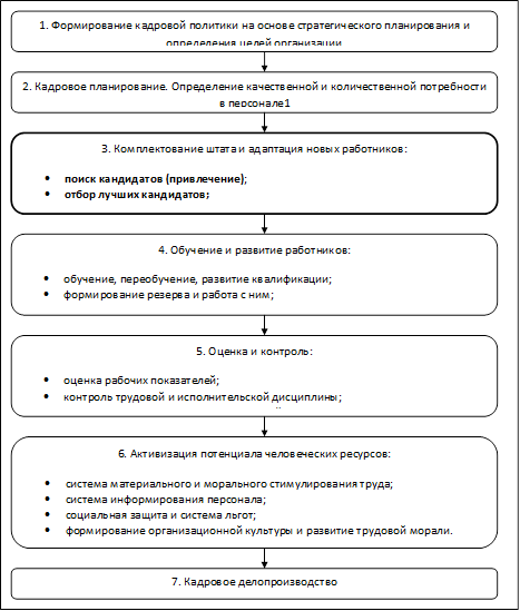 3. Комплектование штата (обеспечение необходимой численности персонала) включает в себя поиск и привлечение персонала, отвечающих установленным требованиям, и отбор кадров, обладающих такими знаниями, способностями и опытом, которые необходимы для должного выполнения работы.