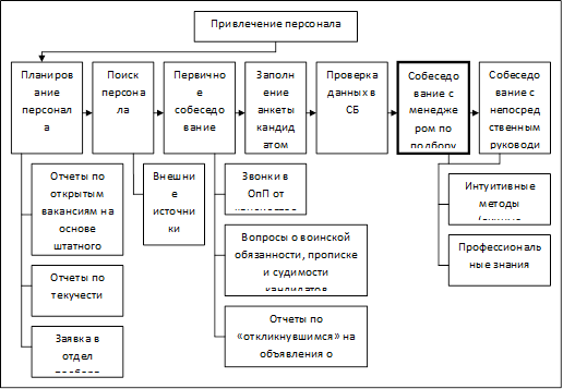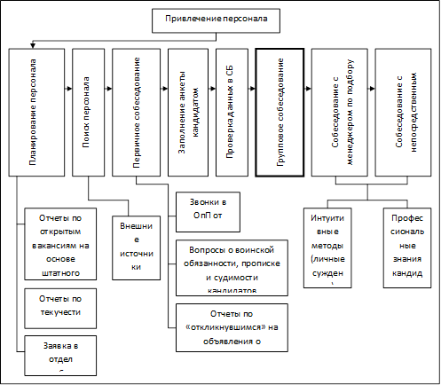Иванникова Н.Н. говорит о том, что "привлечение персонала – это одна из базовых технологий формирования персонала" [27, 43]. А формирование персонала, в свою очередь происходит за счет процессов набора, отбора и подбора.