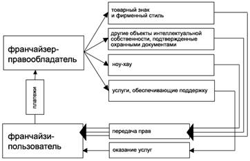 По сути франчайзинг это такая система ведения предпринимательской деятельности, при которой мелкие частные фирмы заключают контракт на право использования фабричной марки крупной фирмы в своей деятельности. При этом передающая сторона (крупная фирма) обязуется оказывать содействие в становлении бизнеса, обеспечивать техническую и консультативную помощь. Приобретающая права сторона (мелкая фирма) производит платежи за право использования в своей предпринимательской деятельности прав франчайзера и оказываемые услуги, целью которых является поддержка франчайзи.