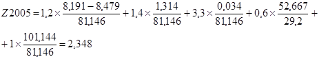 1. Ресурсовіддача активів в чисту виручку підвищилась з рівня 0,27 (2003) до 0,81 у 2004 році та подальше підвищилась до рівня 1,25 у 2005 році;