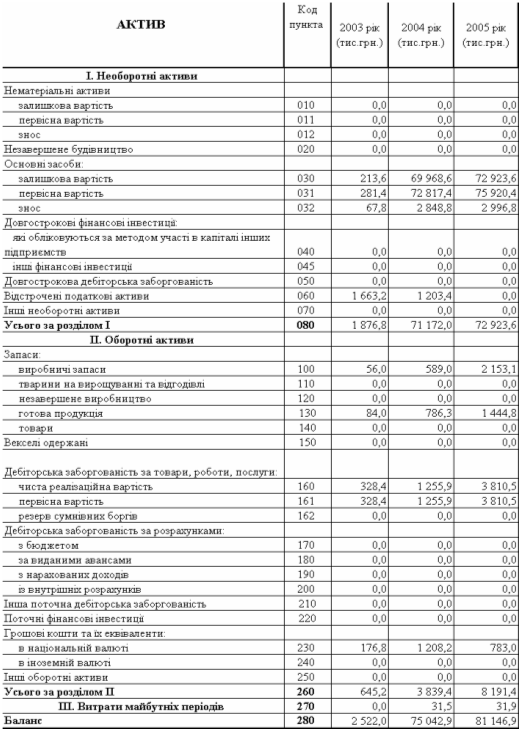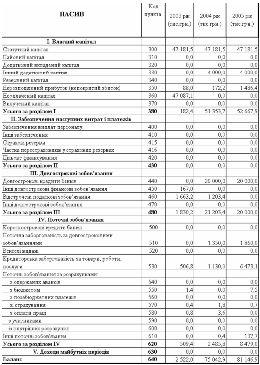 Балансові звіти ТОВ ДКБ „РОТЕКС” за 2003 – 2005 роки