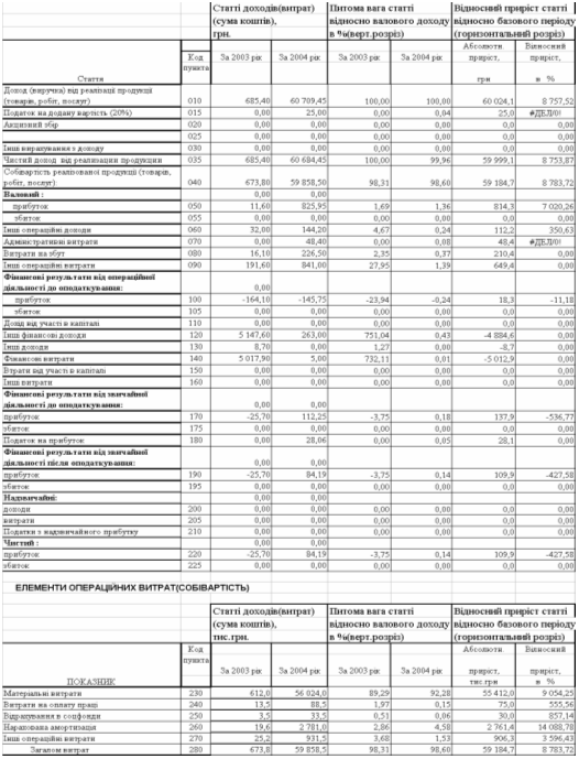 “Вертикальногоризонтальний аналіз динаміки фінансових звітів ТОВ “Дослідноконструкторське бюро “РОТЕКС” за 2003 – 2004 роки